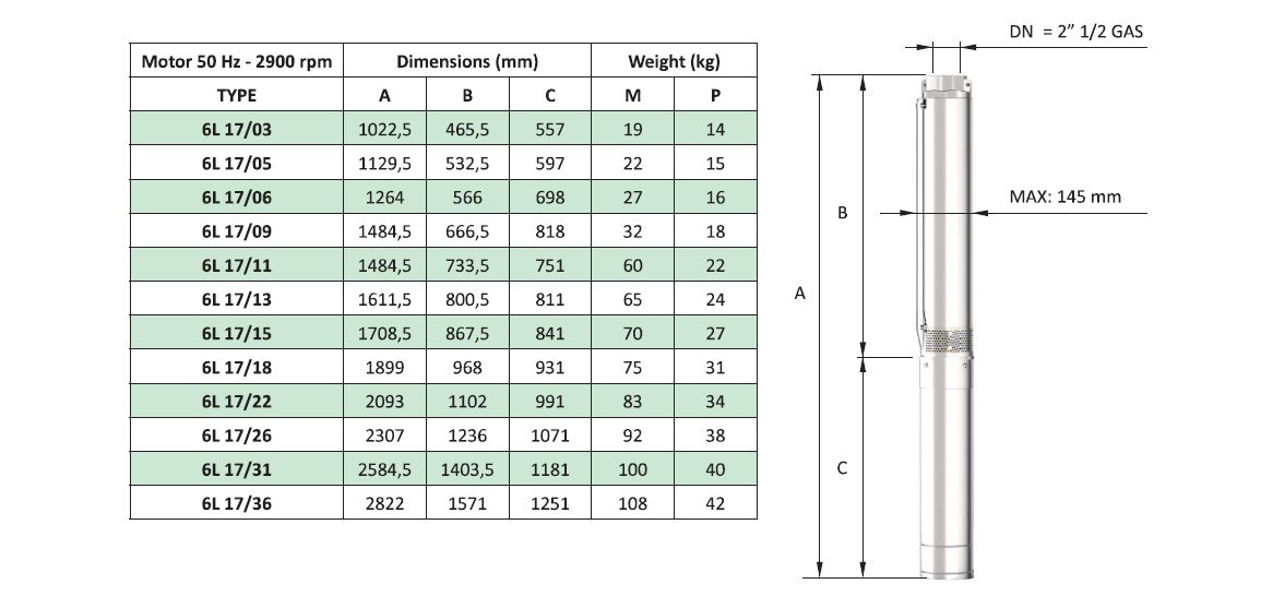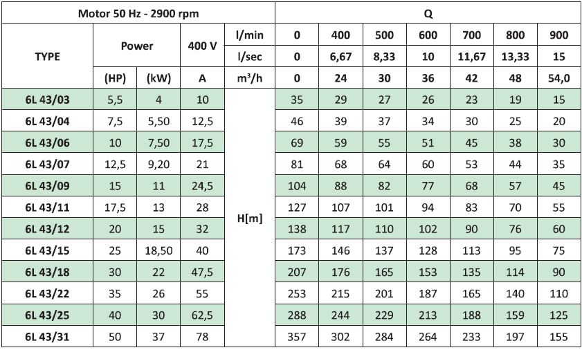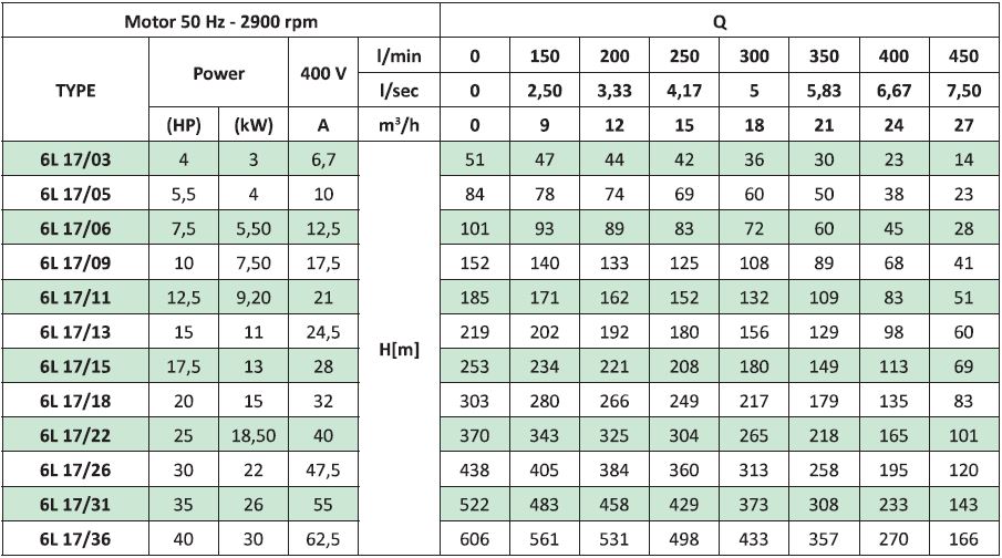 Bơm chìm giếng khoan ly tâm đa tầng cánh 6L là dòng sản phẩm thích hợp cho giếng khoan 6''. Van một chiều được gắn vào đầu ra của bơm. Mặt bích của máy bơm gắn với Motor được làm theo tiêu chuẩn NEMA. Sản phẩm được ứng dụng rộng rãi trong hệ thống bơm chìm giếng khoan dân dụng và công nghiệp