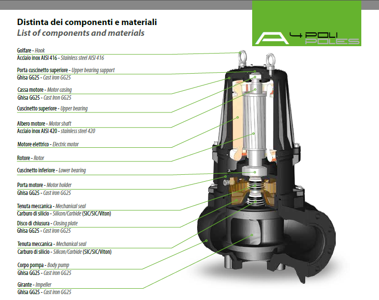 A4 là dòng sản phẩm bơm chìm được sử dụng để vận chuyển nước thải trong các hệ thống thoát nước. Sự phong phú và đang dạng cũng như lưu lượng nước cao giúp cho sản phẩm A4 thích hợp cho việc sử dụng trong các hệ thống xử lý nước, hệ thống thoát nước, nhà máy nông nghiệp và công nghiệp, bệnh viện, khai thác mỏ, và khách sạn.