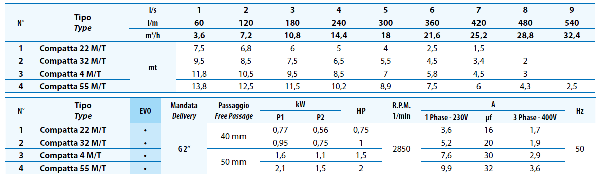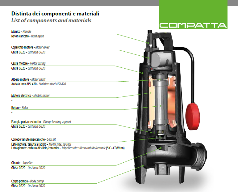 COMPATTA là dòng sản phẩm bơm chìm nước thải với cánh Vortex được sử dụng trong các hệ thống xử lý nước thải công nghiệp, dân dụng (lý tưởng), và nông nghiệp với chất lỏng có chứa các vật thể rắn.