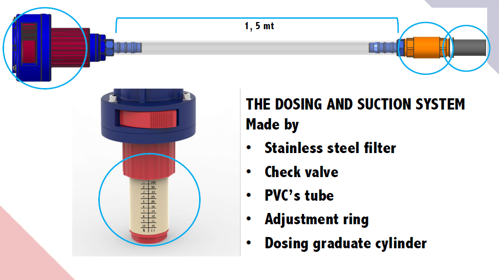 Cấu tạo bên trong của máy trộn hóa chất chính là buồng bơm và Piston - bộ phận cực kì quan trọng của sản phẩm - được làm từ nhựa PA12. Dựa vào dòng chảy của nước, các hóa chất cần trộn sẽ được bơm vào buồng trộn để tiến hành xử lý để tạo thành sản phẩm định lượng với tỉ lệ chính xác hoàn hảo.