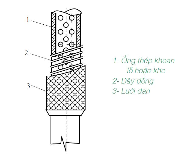 Nếu lớp đất chứa nước là cuội sỏi hoặc cát to thì đội ngũ kĩ thuật không cần lưới bọc ngoài. Tuy nhiên, nếu lớp đất chứa nước ngầm là cát mịn thì ngoài lưới đan nên bọc sỏi phía ngoài.