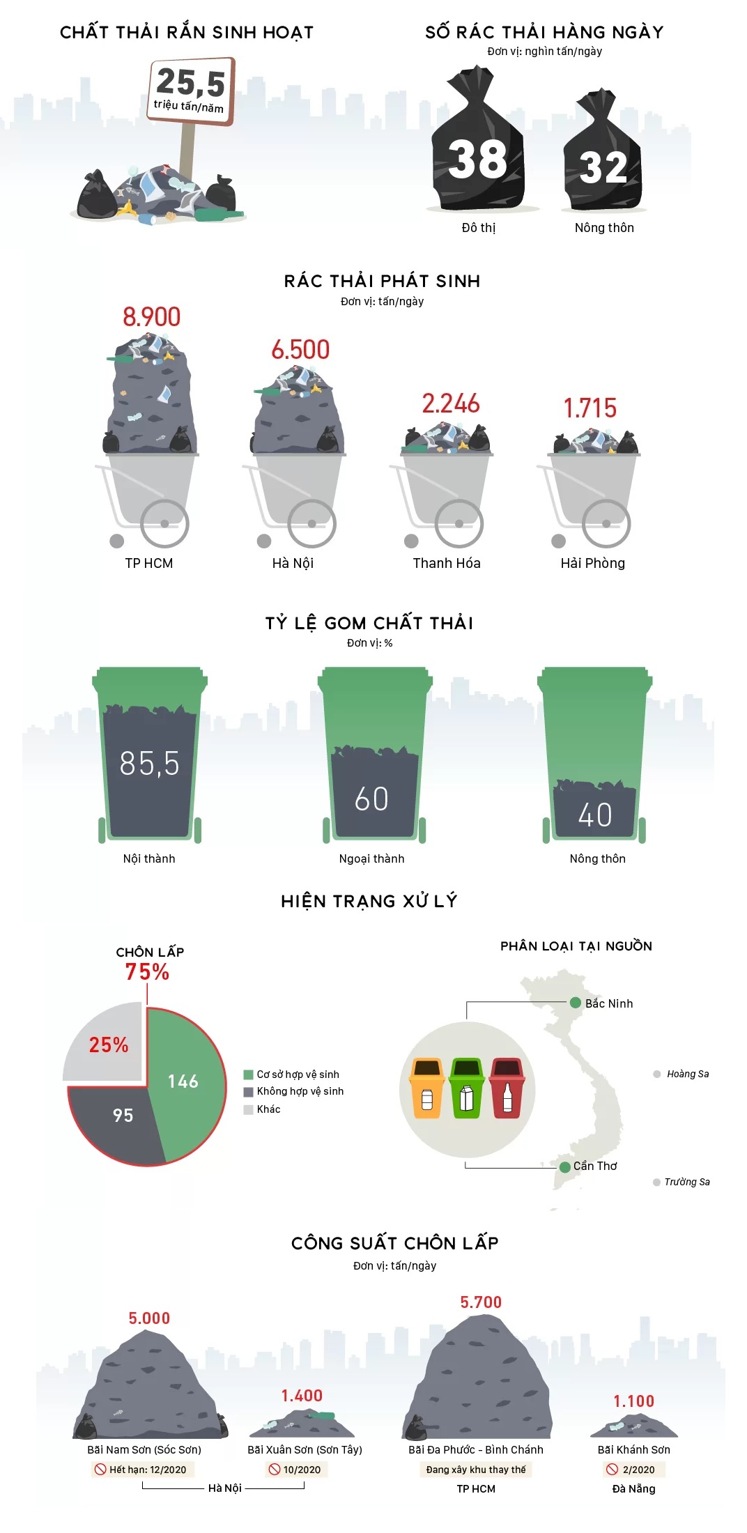 Theo báo cáo của Tổng cục Môi trường, mỗi ngày ở Việt Nam phát sinh khoảng 70.000 tấn rác thải sinh hoạt, trong đó nhiều nhất là TP HCM với gần 9.000 tấn. Vậy cách xử lý rác thải hiện nay ra sao? Hãy cùng xem thông tin dưới đây để tìm hiểu thêm nhé!!