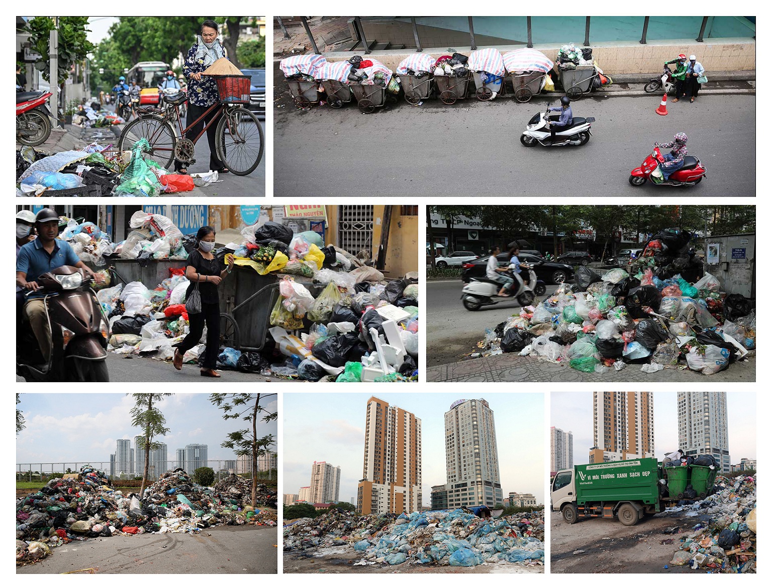 Mấy ngày vừa qua, nhiều khu phố tại Hà Nội bị ùn ứ rác thải. Rác chất thành đống, những xe rác, đống rác nối dài hàng trăm mét dọc đường đi. Thời tiết nắng nóng, rác thải phân hủy bốc mùi khó chịu, gây ảnh hưởng lớn đến người dân sinh sống chung quanh và người tham gia giao thông.